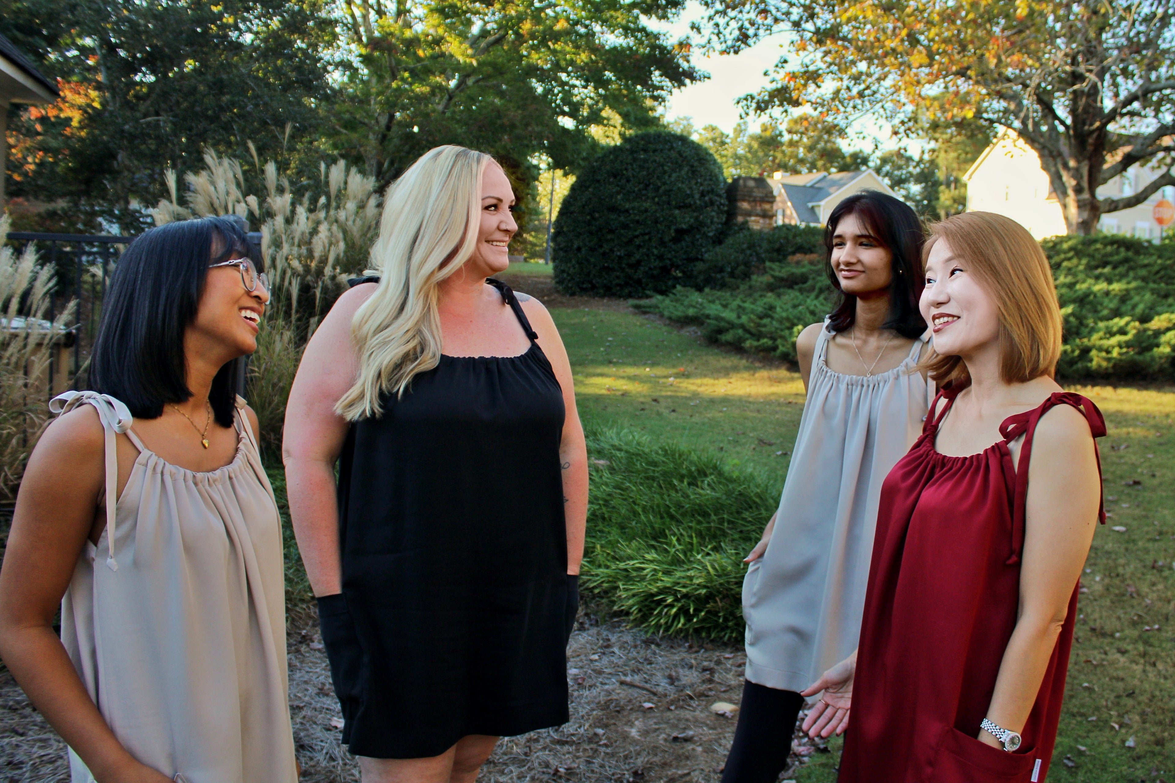 Seint Grace is deeply personal. Its story began long before sketches or fabrics, shaped in the quiet moments of my childhood home. My dad’s steady faith and devotion to family anchored me. My mom, who immigrated from the Philippines, sewed my dresses with her own hands and taught me that every garment carries a story and every stitch can hold love. Before her, my Lola embroidered pillowcases and stitched undergarments from softened rice bags, creating dignity out of what little she had.
